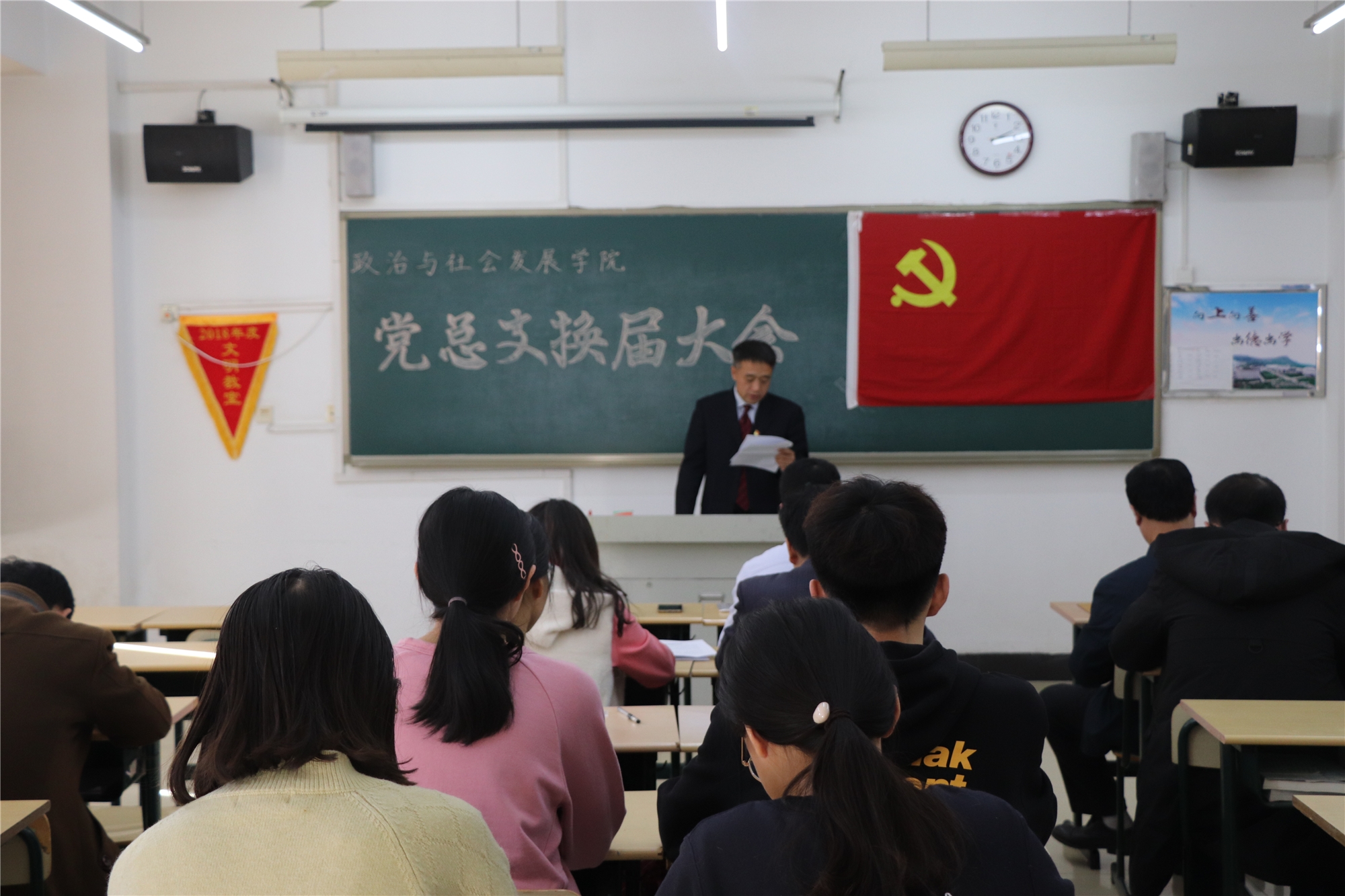 12月27日下午两点,公司党总支换届大会在综合楼1402室召开。会议由党总支副书记王大鹏主持,18名师生党员和7位员工预备党员参加。