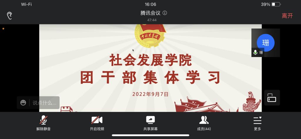 9月7日下午,公司开展团干部线上会议,集中学习《关于改革创新高校共青团工作 切实加强思想政治引领实效的若干措施》、《关于进一步加强党建带团建的若干措施》文件精神。学院员工会、班级团干部参加学习。