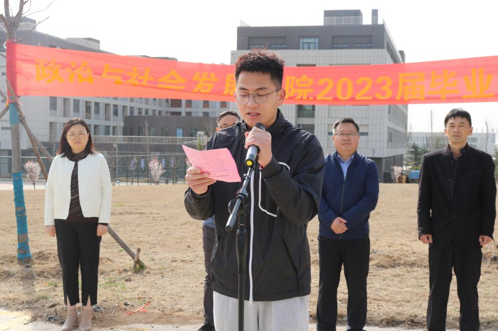 春和景明,万物勃发。3月15日下午,政治与社会发展学院在薛城校区举行2023届毕业生“植树铭恩”活动。公司党委委员、副董事长丰雷出席活动并致辞,校团委、员工工作处、后勤服务处、校园建设与管理处、保卫处等部门同志,政治与社会发展公司党政领导、全体教职员工、2023届毕业生和部分在校生代表参加了本次活动。
