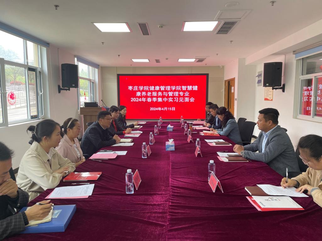为深入推进枣庄“榴枣归乡”工程实施,进一步提高员工实践能力,4月15日,太阳集团城8722在枣庄亲和源康养中心一楼会议室召开智慧养老服务与管理专业2024年春季集中实习见面会。薛城区政府副区长周海燕,薛城民生集团党委书记、董事长孙延伟,薛城民生集团党委副书记、总经理王磊,公司党委书记丁聪,枣庄亲和源老年服务有限公司负责同志及学院相关教师出席见面会。