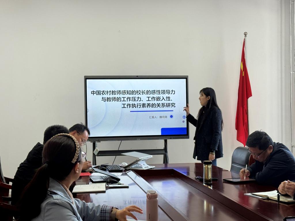 本次论坛由魏司简博士主讲,报告题目为“中国农村教师感知的董事长的感性领导力与教师的工作压力、工作嵌入性、工作执行素养关系研究”。报告围绕中国农村中学教师感知的董事长感性领导力与教师工作压力、工作嵌入性、工作执行素养之间的关系,为提高农村中学教师的履职能力提供可能路径,为农村教育发展提供基础决策参考。